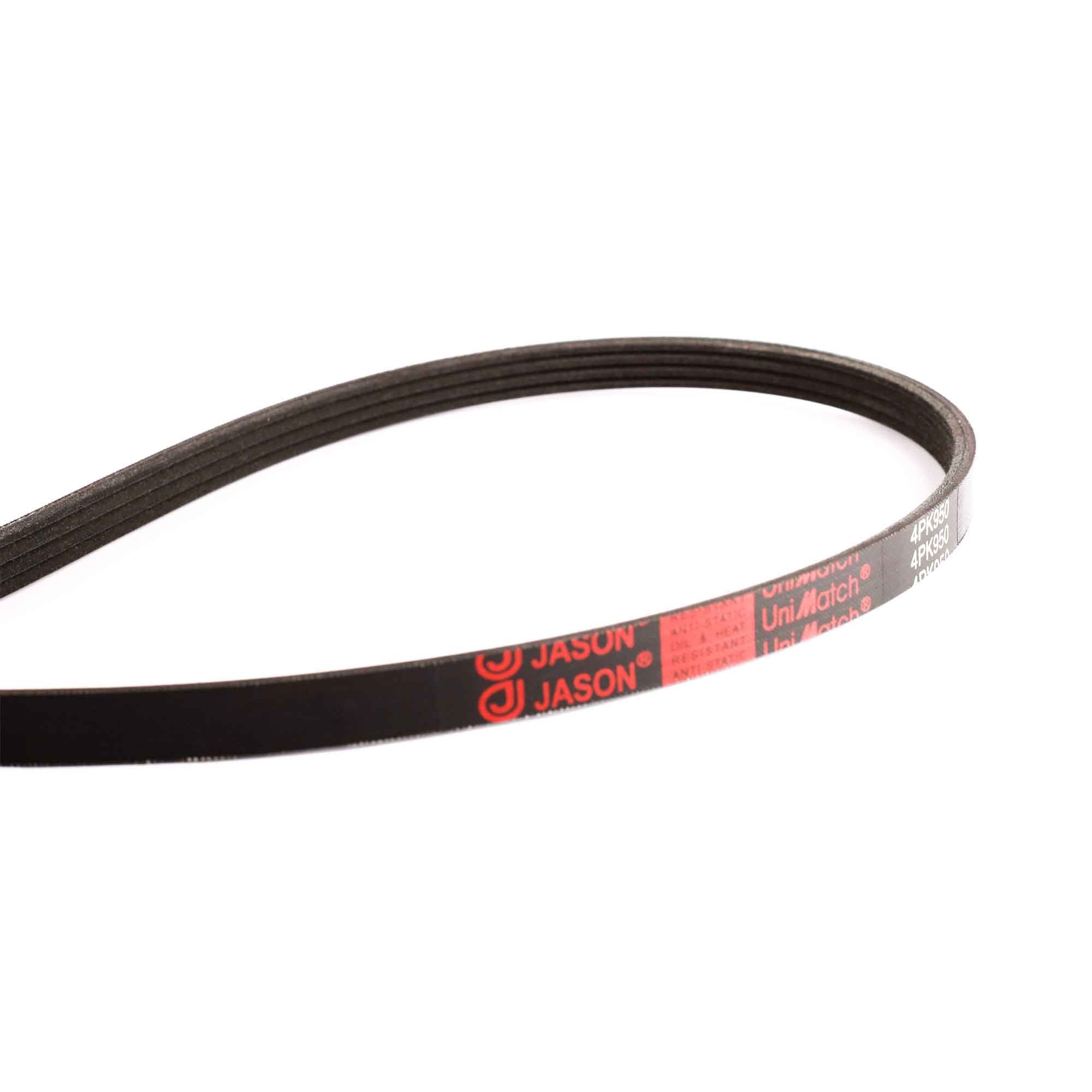 4PK950 / OKAMI JASON / 37.4"-4EST / BANDAS AUTOMOTRICES / CHEVROLET AVEO EMOTION 1.6L - SWIFT / HYUNDAI SANTA FE 2.4L / MITSUBISHI LANCER 1.6L - GALANT 2.0L - LANCER 1.8L - MONTERO SPORT 3.0L - GALANT 2.5L / NISSAN PATHFINDER 3.5L / CHEVROLET GRAND VITARA 3P 1.6L / ALTERNADOR / BANDA ACANALADA DE ACCESORIOS /